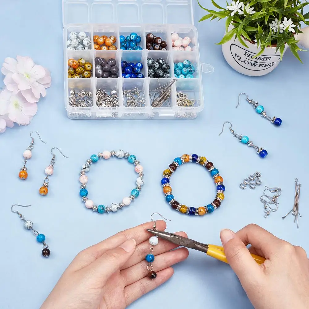 Купить 1Box Baking Painted Glass Beads with Metal Findings Tool for DIY Beading Bracelet Earring Necklace Jewelry Making Craft Supplies за 750рублей
