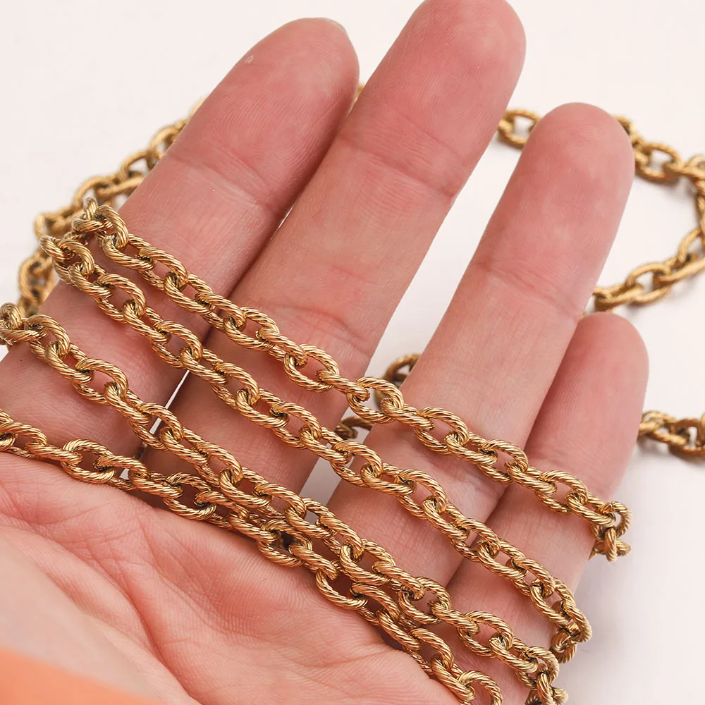 Купить 1M Gold-Plate Stainless Steel Twist O chain Embossing Bulk Textured Chunky heavy Chains for Punk Rock Jewelry Making DIY за 200рублей