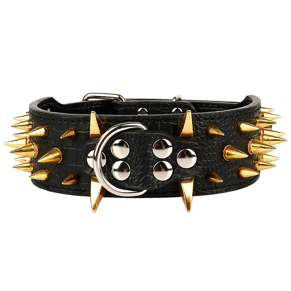 Купить 2" Wide Sharp Spiked Studded Leather Dog Collars Pu Leather Adjustable Pet Collar Mrtal Gold Pet Leash Retractable Pets Products за 750рублей