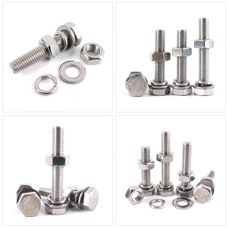 Купить 20-1PCS 304 Stainless Steel Hex Head Screws Nuts Flat Washers Lock Washers Kits Hexagon Bolts Set M3 M4 M5 M6 M8 M10 M12 M14 M16 за 200рублей