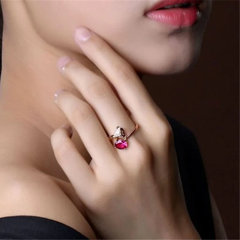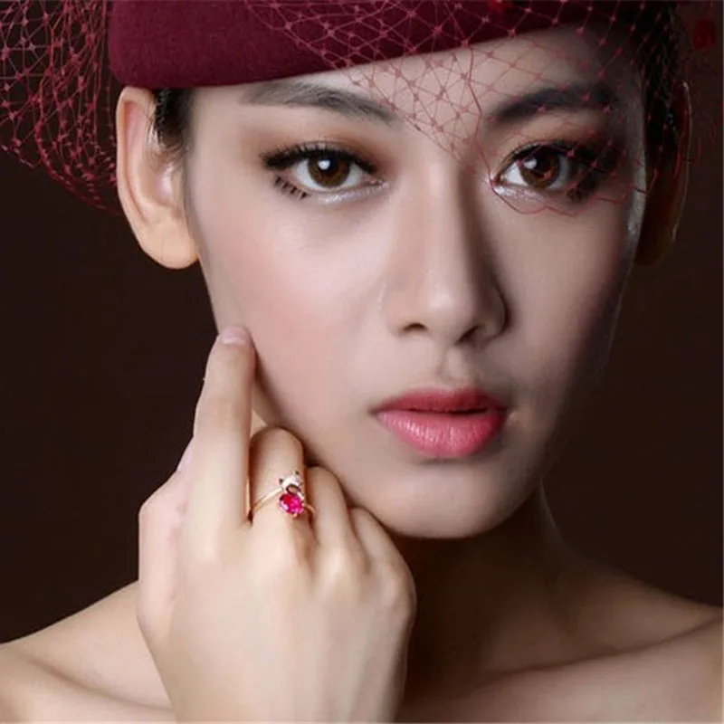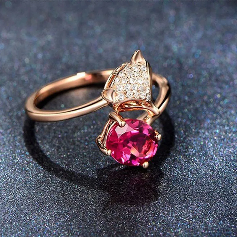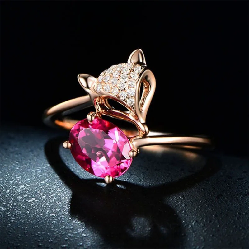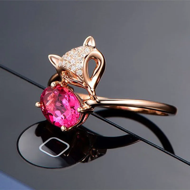 Купить 2021 Fashion Temperament Fox 925 Silver-plated Ring Imitation Natural Ruby Tourmaline Rose Gold-plated Fairy Women Fine Jewelry за 200рублей