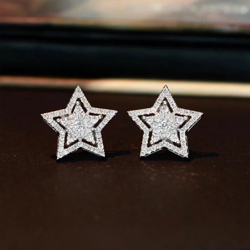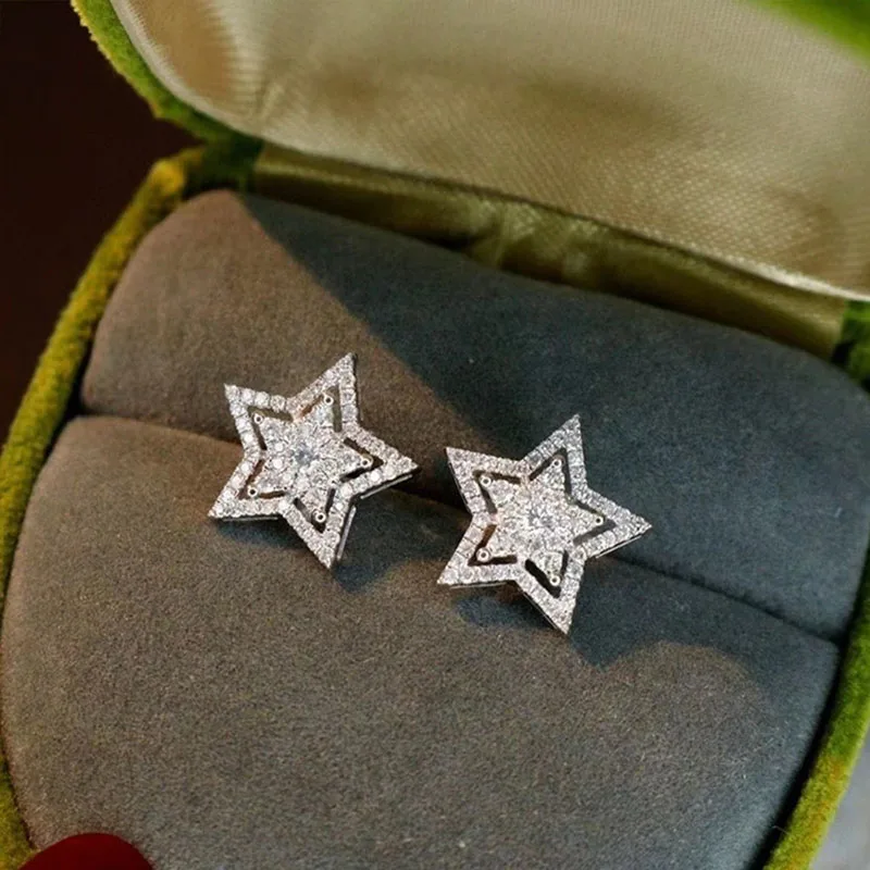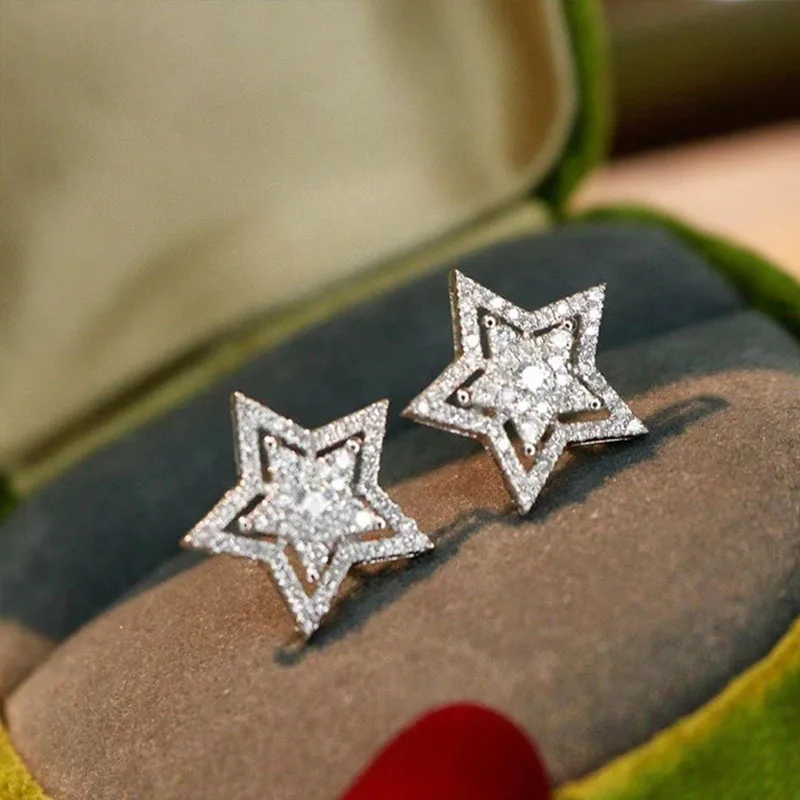 Купить 2021 New Fashion Light Luxury Temperament Same Imitation Zircon Five-pointed Star Stud Earrings For Women Exquisite Jewelry Gift за 250рублей