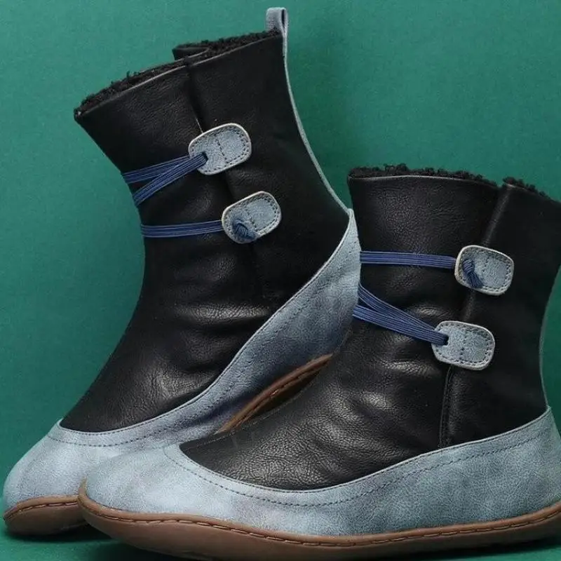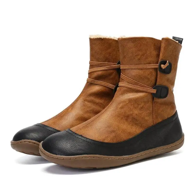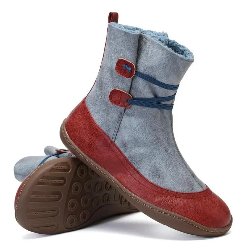 Купить 2021 New Winter Leisure Short Fleece Color Matching Flat Round Head Elastic Band Women's Boots за 400рублей