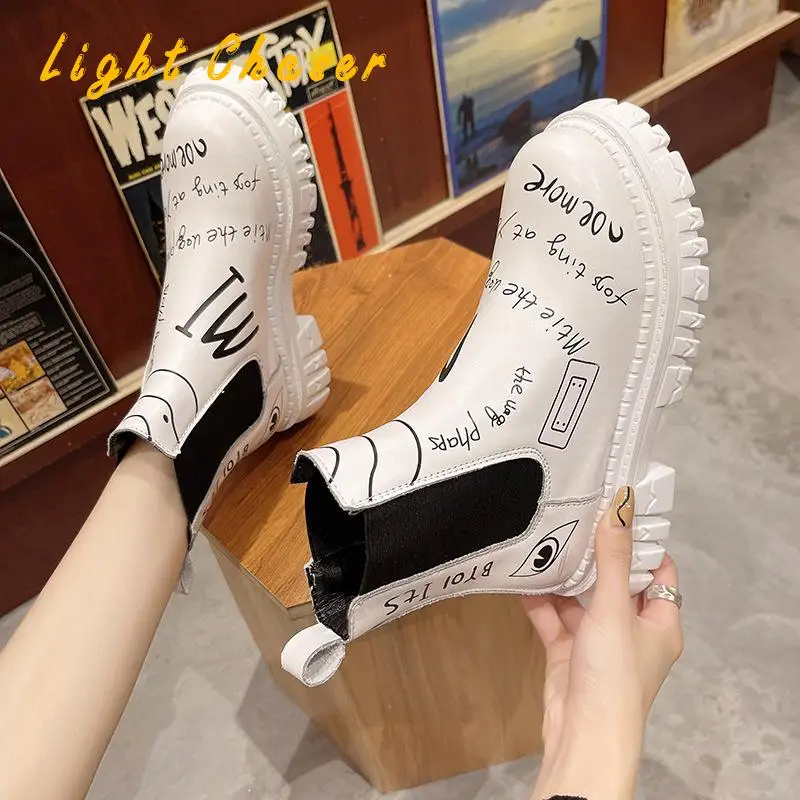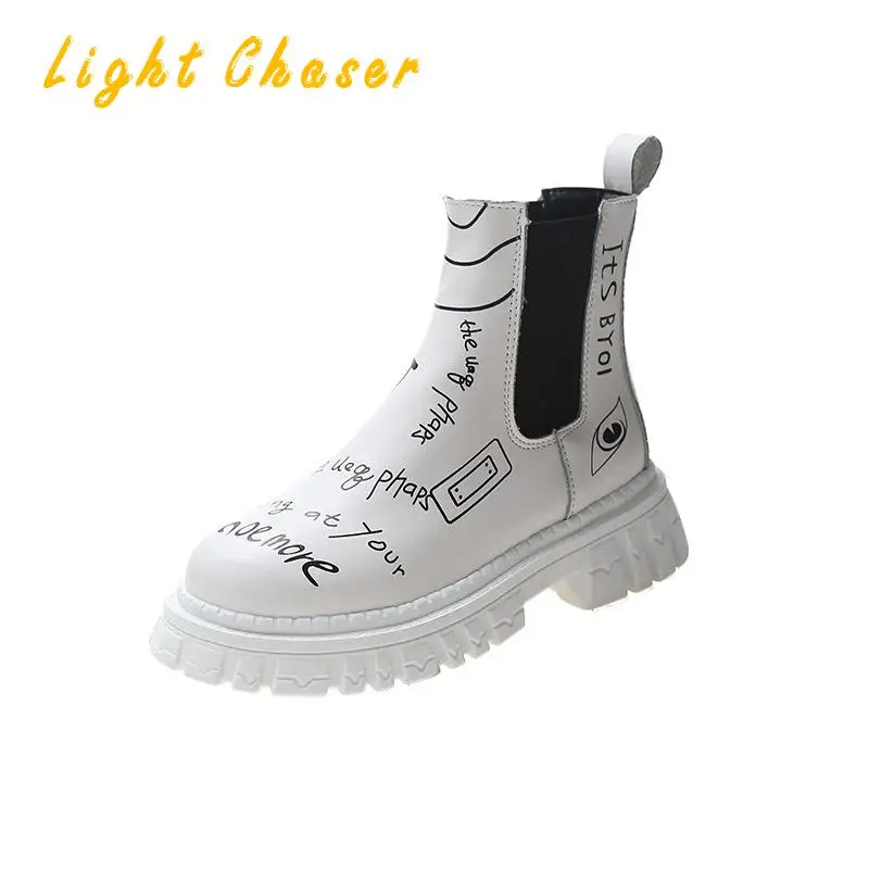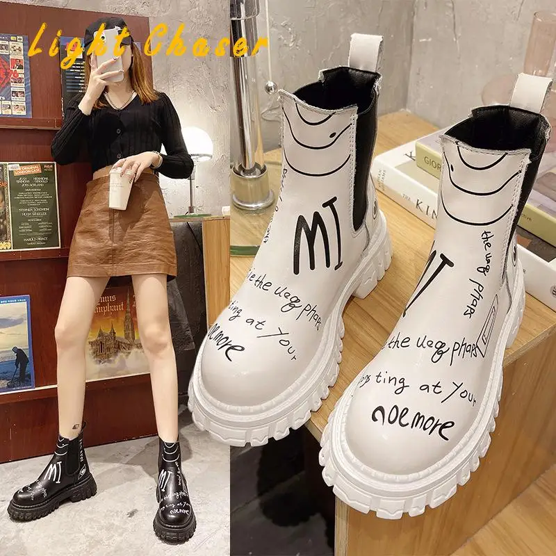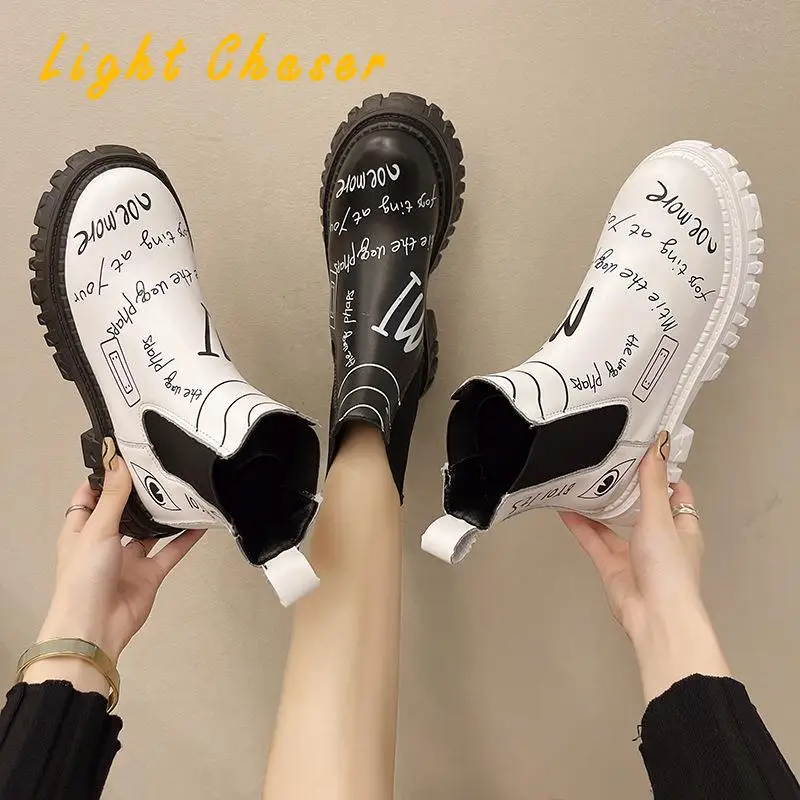 Купить 2021 Winter New Pu Leather Ankle Boots Women Autumn Winter Round Toe Lace Up Shoes Woman Fashion Motorcycle Platform Botas за 1000рублей