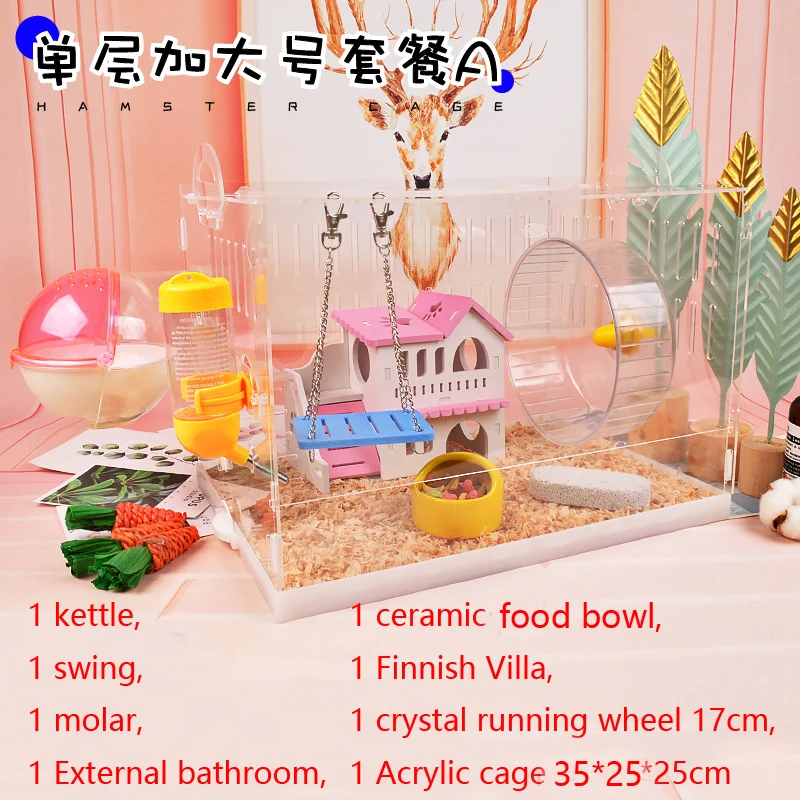 Купить 2022 Acrylic Transparent Hamster Cage Pet Set Single Layer Super Large Wood Villa Guinea Pig Squirrel Running Wheel Toy Supplies за 250рублей