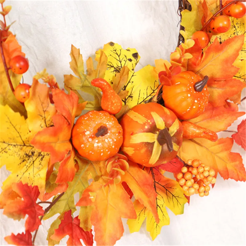 Купить 2022 Autumn Theme Door Wreath Artificial Pumpkin Berries Pine Cone Maple Manmade Garland Cloth Rattan Material Home Decoration за 450рублей