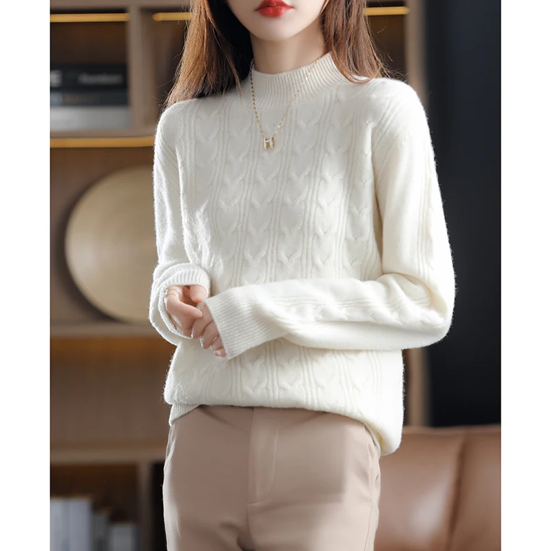 Купить 2022 Autumn Winter New Cashmere Sweater Women's Half Turtleneck Pullover Pure Color Fashion Versatile Pure Wool Knit Sweater за 2350рублей