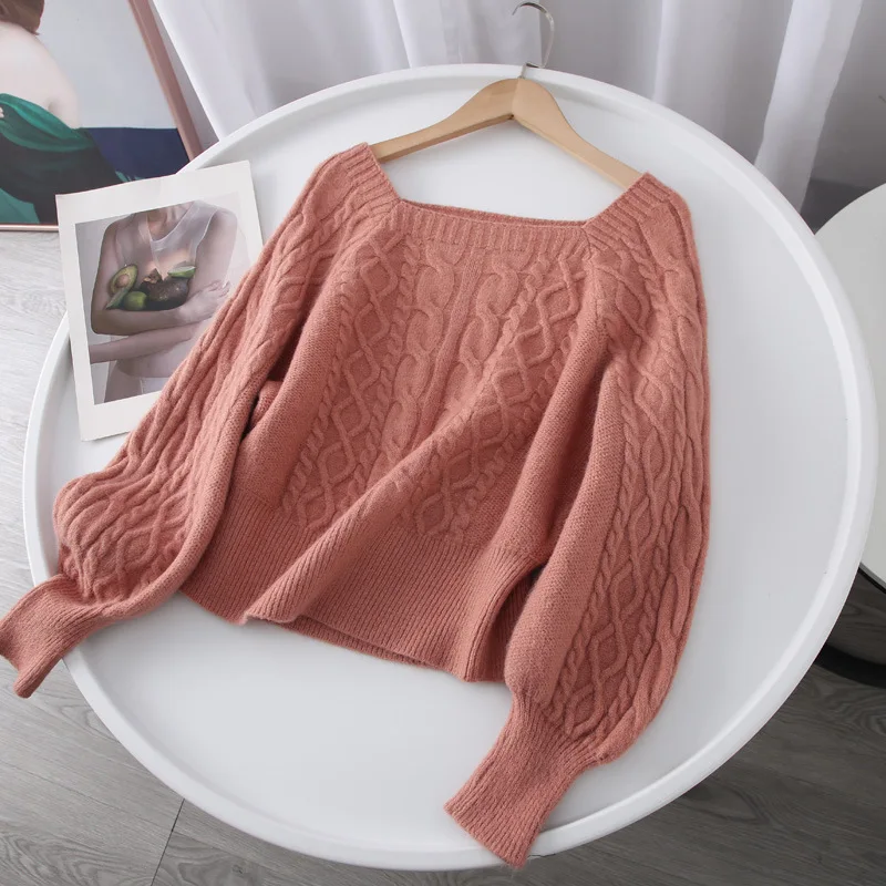 Купить 2022 Autumn Winter New Korean Style Twist Loose Lantern Sleeve Pullover Sweater Short Knitwear Top for Women 가디건 за 1250рублей