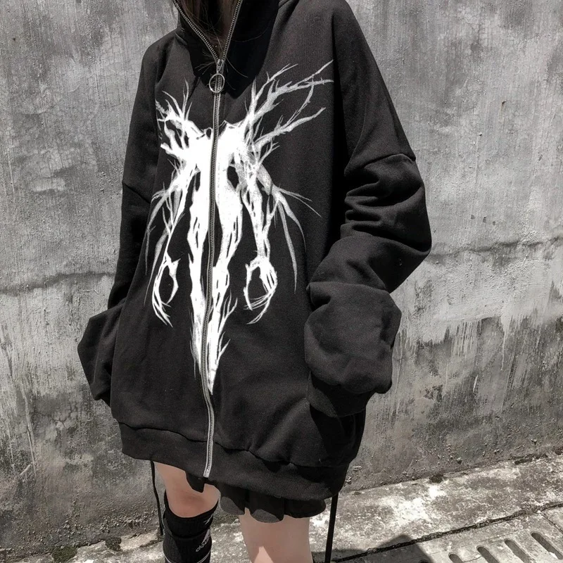 Купить 2022 Black Hooded Long European and American Loose Solid Color Street Zipper Cardigan Sweater Zip Up Hoodie for men and women за 1150рублей