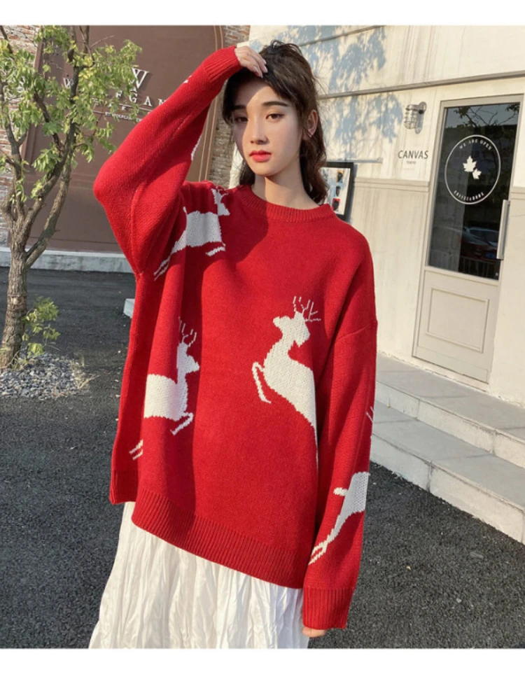 Купить 2022 Free Shipping Elk Pattern Sweater New Style Christmas Loose Pullover Round Neck Women's Winter Clothes Slouchy Unisex Coat за 1100рублей