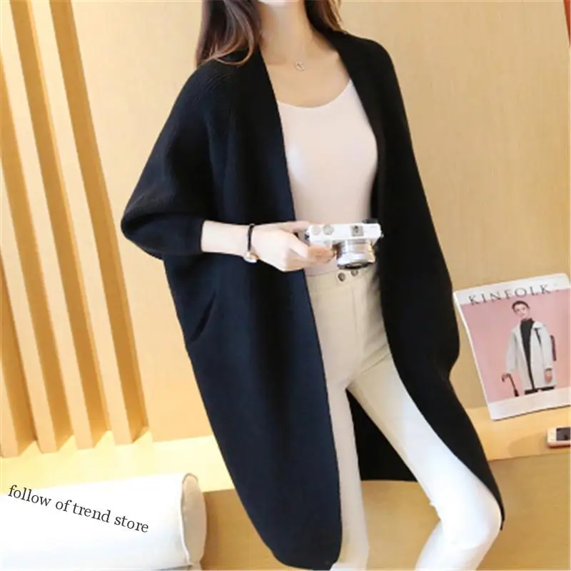 Купить 2022 Long Cardigan Women Sweater Autumn Winter Bat Sleeve Knitted Sweater Jacket Loose Ladies Sweaters Cardigans за 950рублей