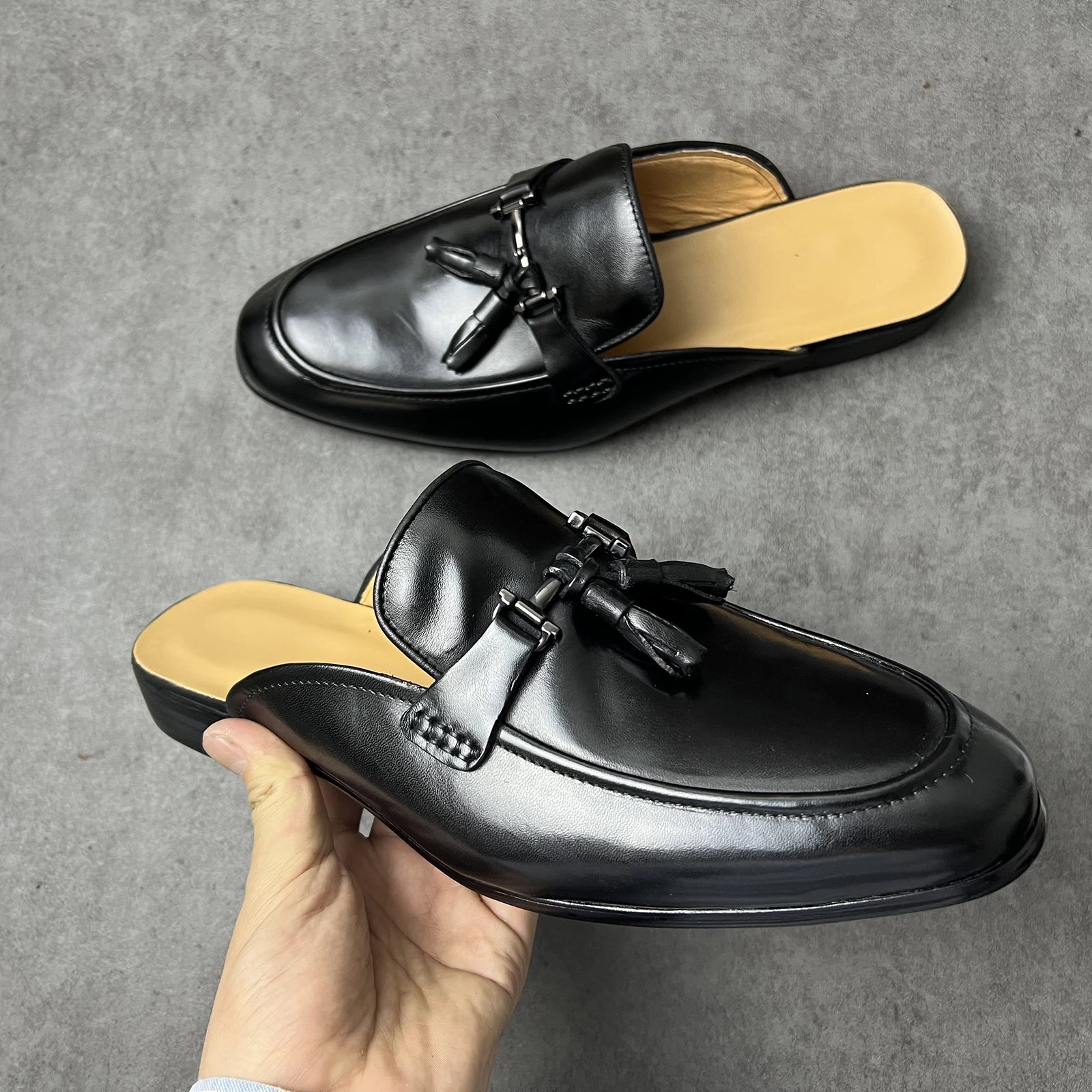 Купить 2022 Men Half Loafers Genuine Cow Leather Causal Slip on Slippers Breathable Mules Shoes for Men Daily Lightweight Hlaf Shoes за 5750рублей