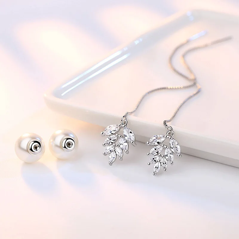 Купить 2022 Needle Zircon Crystal Imitation Pearl Tassel Long Earring Female Temperament Korean Design Personality Ear Line Jewelry за 400рублей