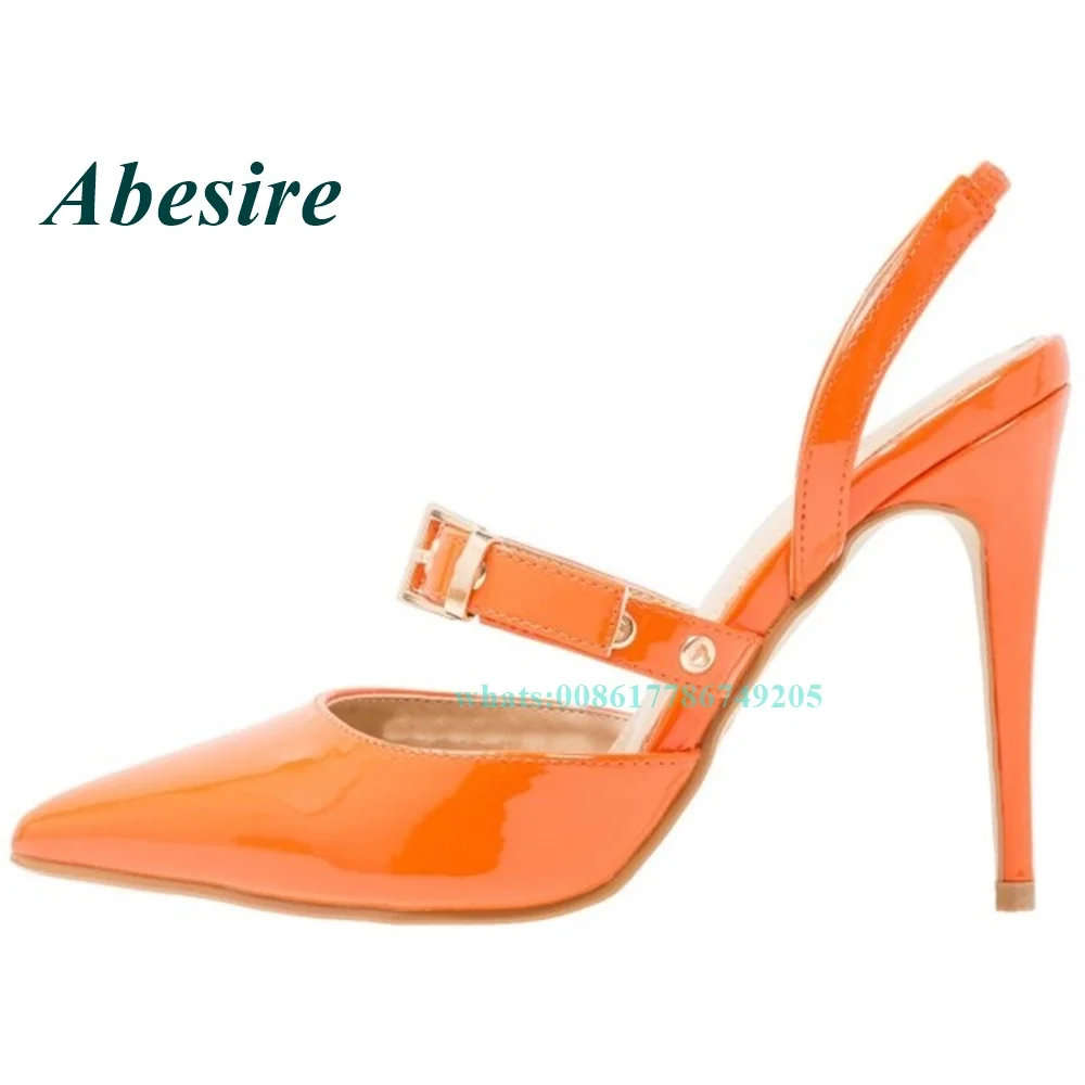 Купить 2022 New Arrival Sandals Pointed Toe Buckle Strap Sandals Patent Leather Stiletto High Heels Orange Slingback Elegant Summer за 3450рублей