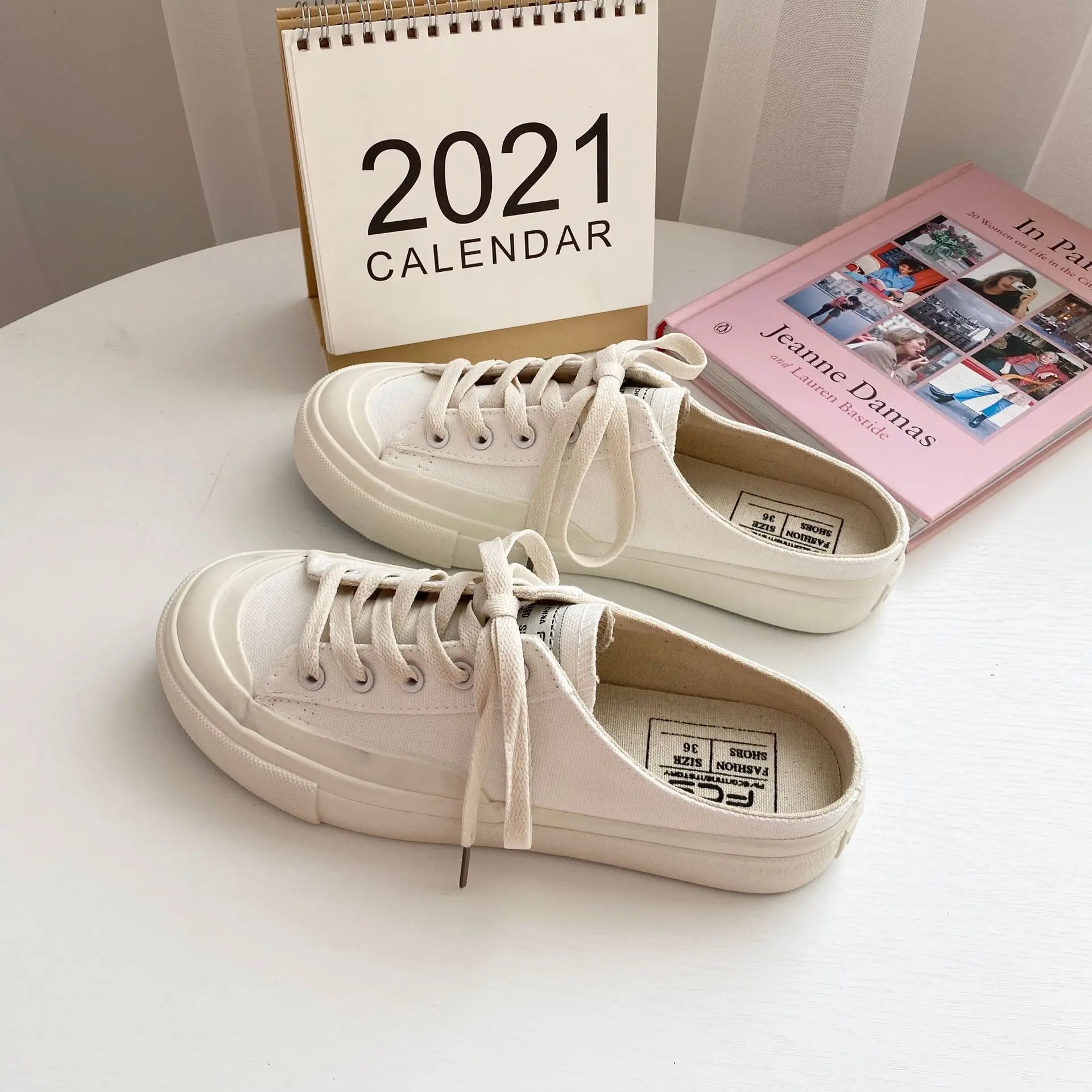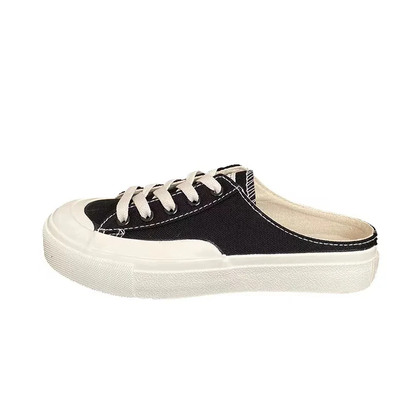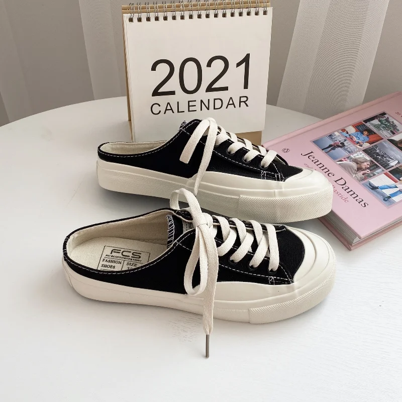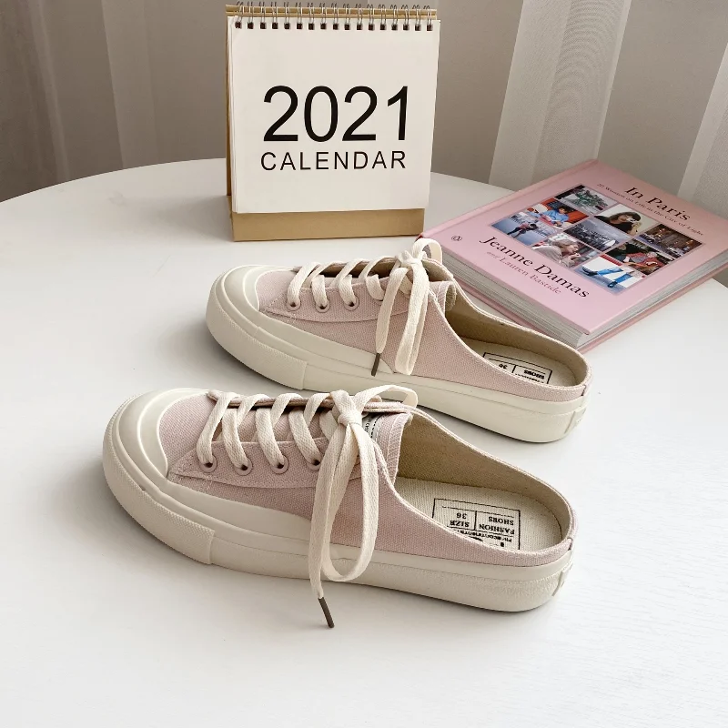 Купить 2022 New Half-drag Canvas Shoes Female Spring and Summer Breathable Stepping Student Shoes Korean Style Trendy Single Shoes за 1100рублей
