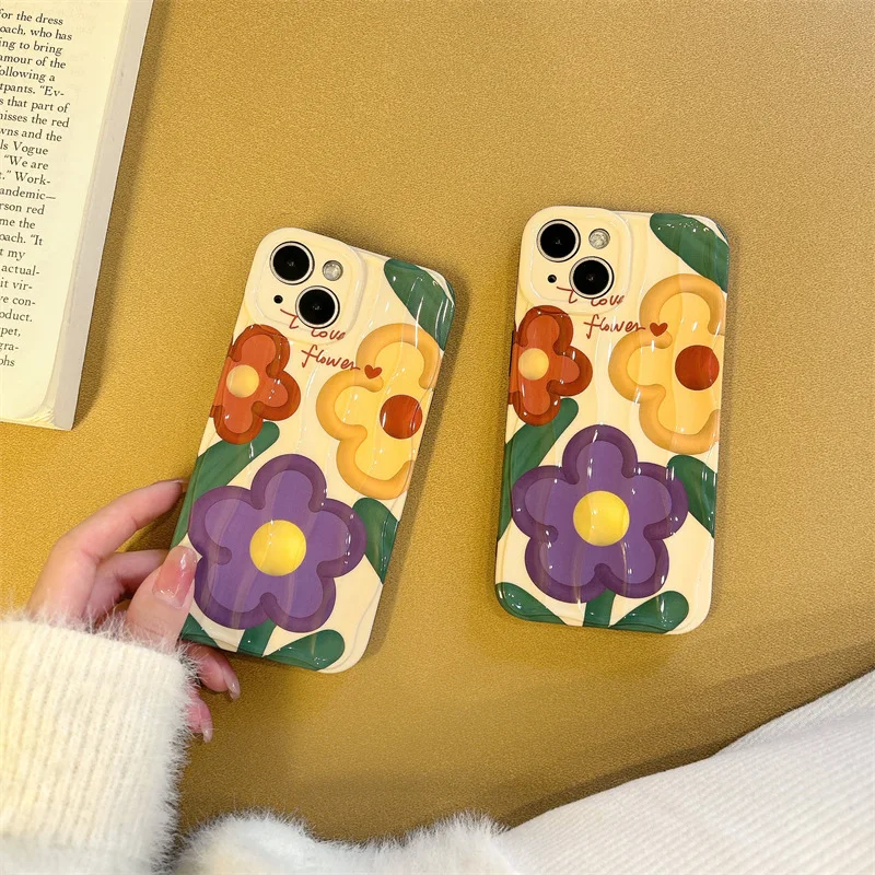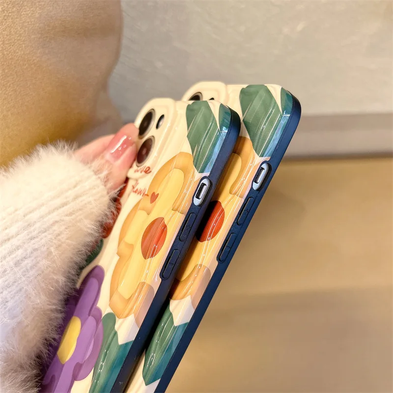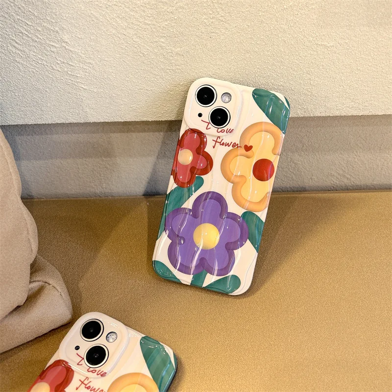 Купить 2022 New Ins Net Red Small Popular Cartoon Flower Stereo Texture Apple Anti Drop Phone Soft Case for iPhone 14 Promax 13 Pro 12 за 250рублей
