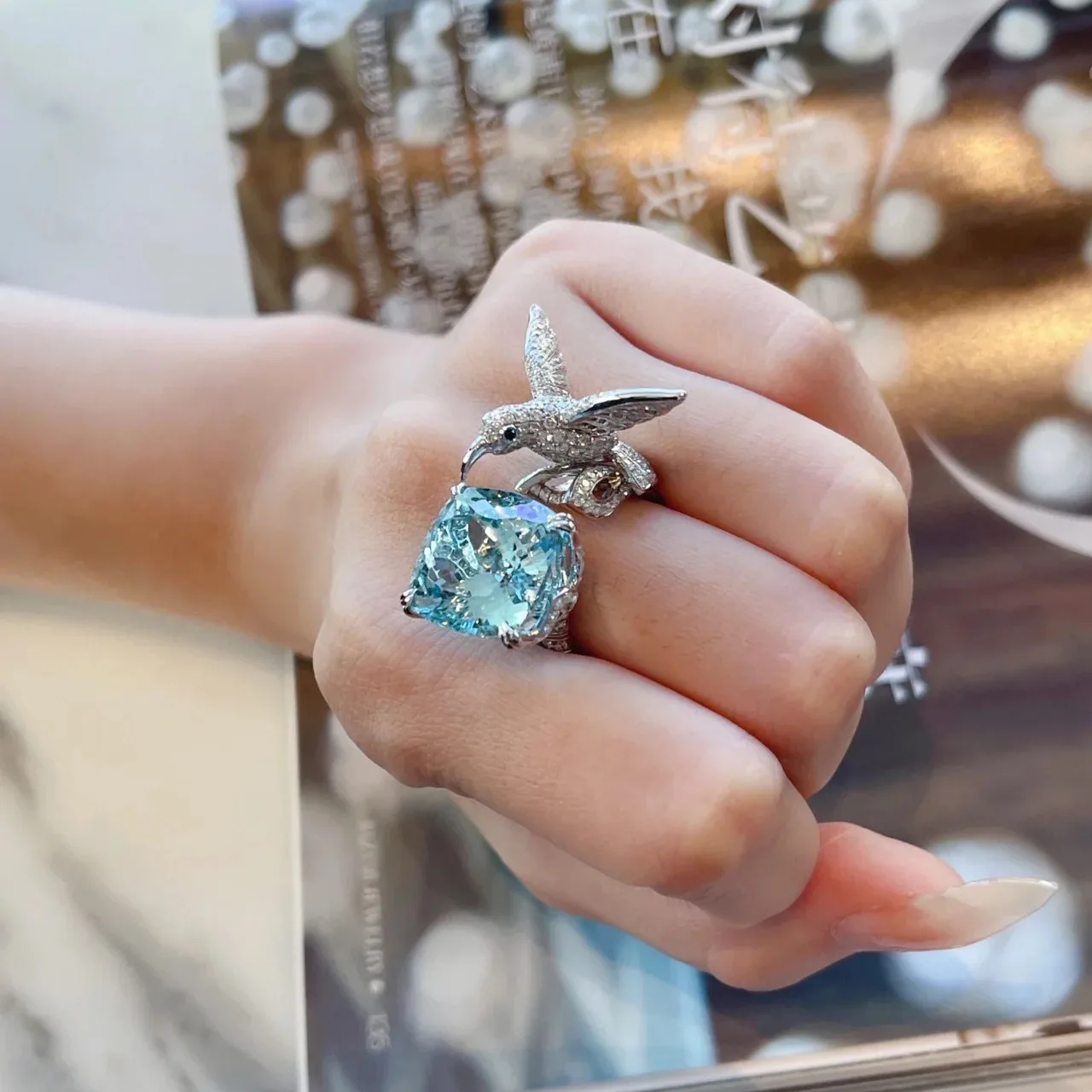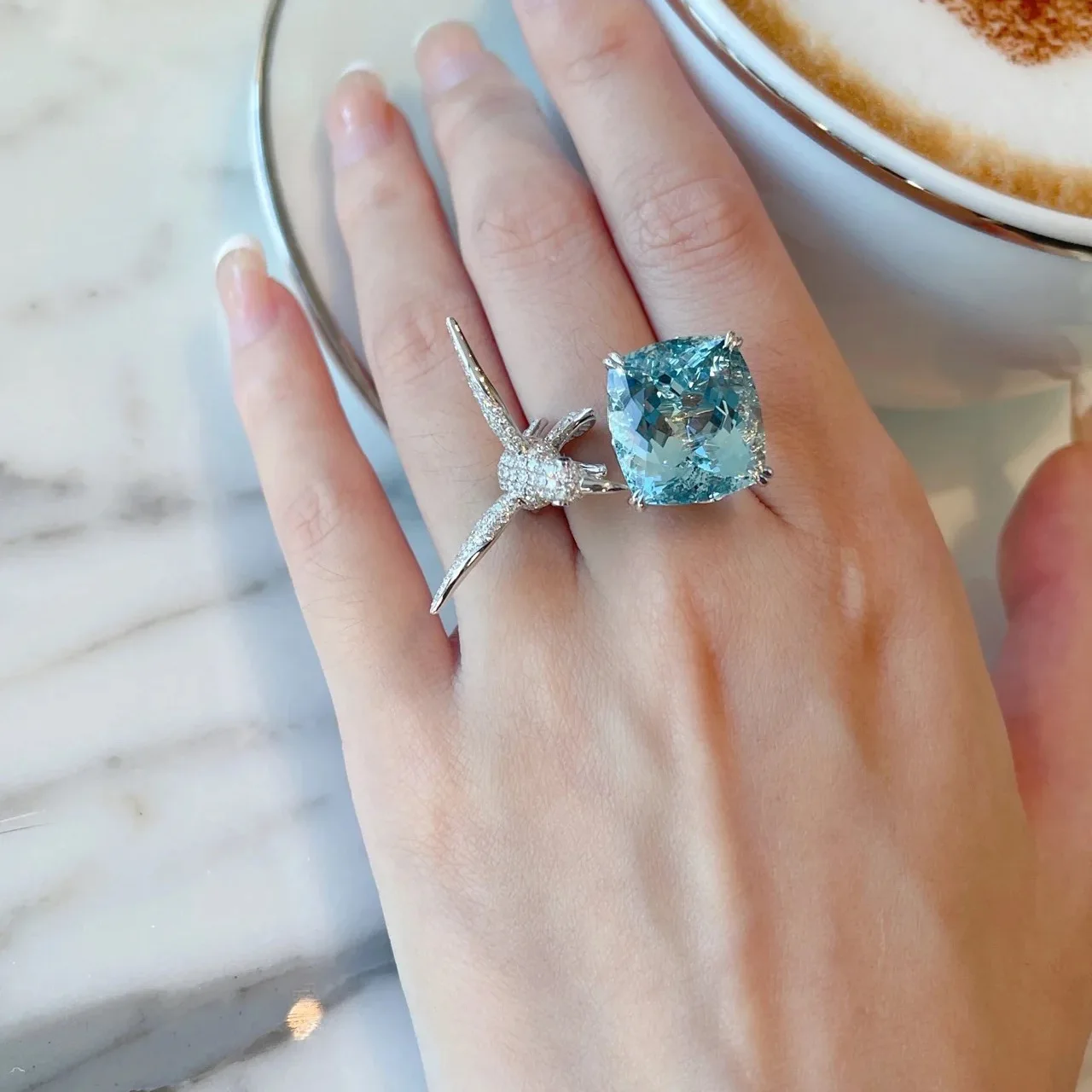 Купить 2022 New Luxury Sea Blue AAA Zircon Seagull Rings for Women Fashion Personality Wedding Prom Party Jewelry Friend Gifts за 650рублей