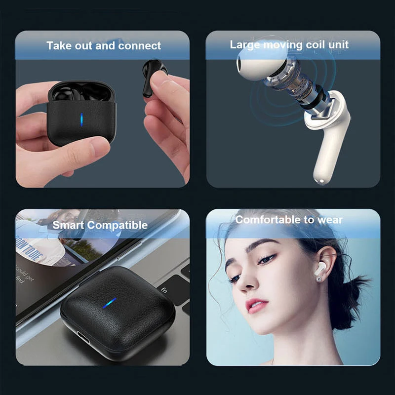 Купить 2022 New Mini Wireless Headphones Earbuds Bluetooth Earphone Leather earphone with Charging Box Game Headset Fone for Smartphone за 700рублей
