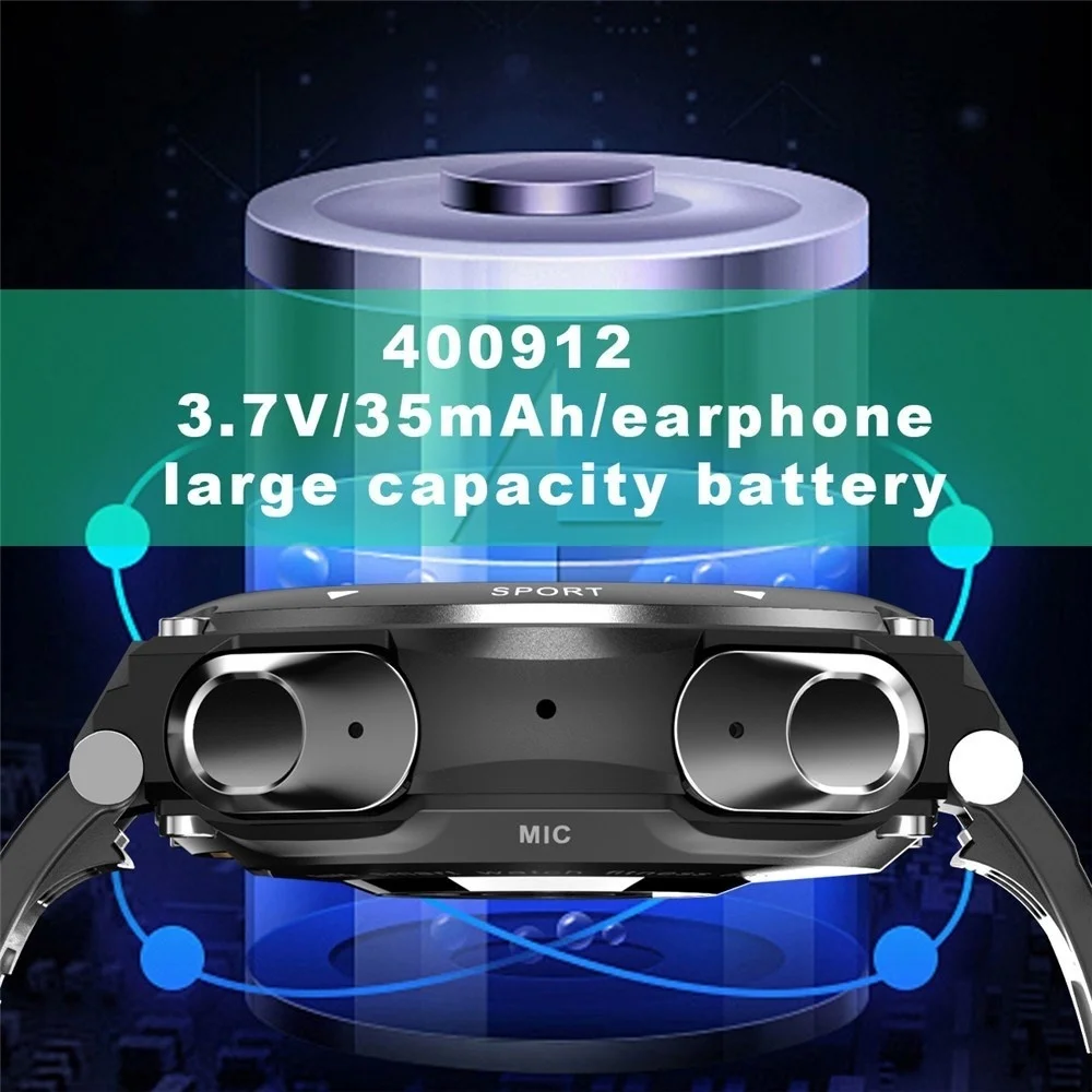 Купить 2022 Smart Watch with earphone 2 in 1Men TWS Bluetooth 5.0 Earphone Call Music Body Temperature DIY Watch Face Sport Waterproof за 3200рублей