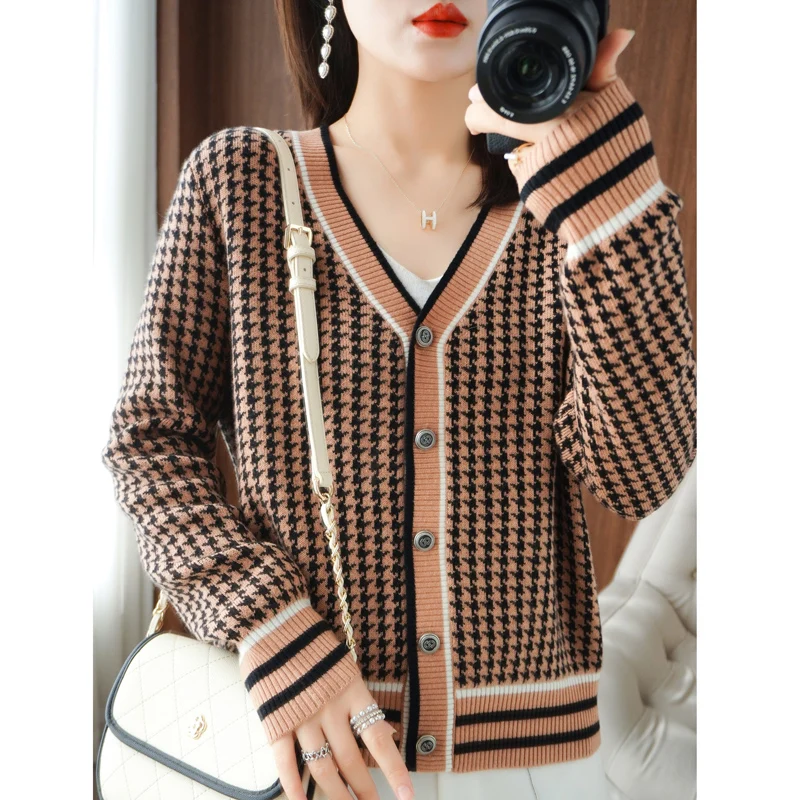 Купить 2022 Spring and Autumn New Cardigan Cardigan, V-neck, Long Sleeve Sweater, Fashionable And Versatile Small Fragrance Style Coat за 1300рублей
