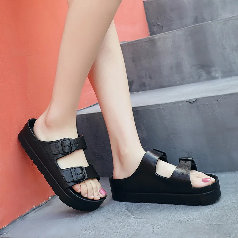 Купить 2022 Summer Women Sandals Shoes Fashion Non-Slip Slides Button Simple Holiday Beach Slippers Bathroom EVA Soft Platform Shoes за 300рублей
