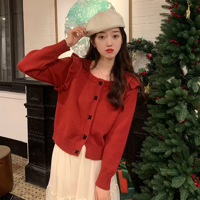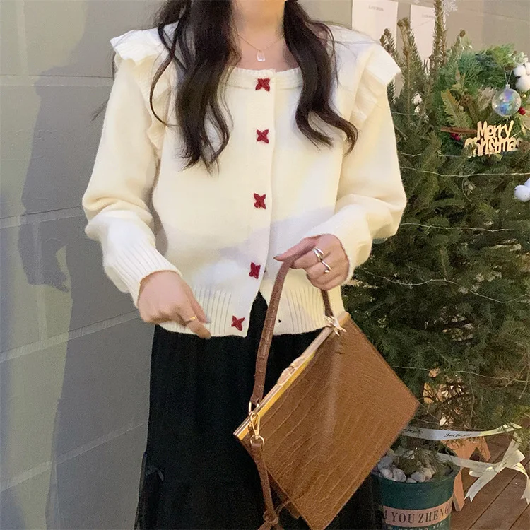 Купить 2022 Sweater Coat Women's Spring New Design Sense of Niche Ruffled Foreign Style Outside Wearing Knitted Cardigan Top Women за 1250рублей