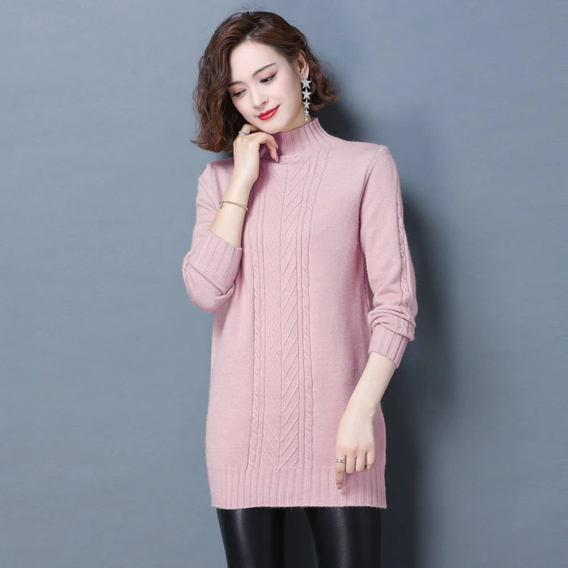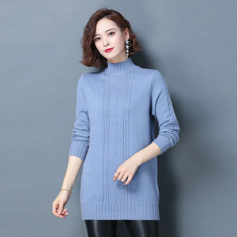 Купить 2022 Winter Autumn Women Soft Warm Pullover Sweaters Blue Camel Pink Green Mock Neck Knitted Tops Hipline Length Knitwear Girls за 1800рублей
