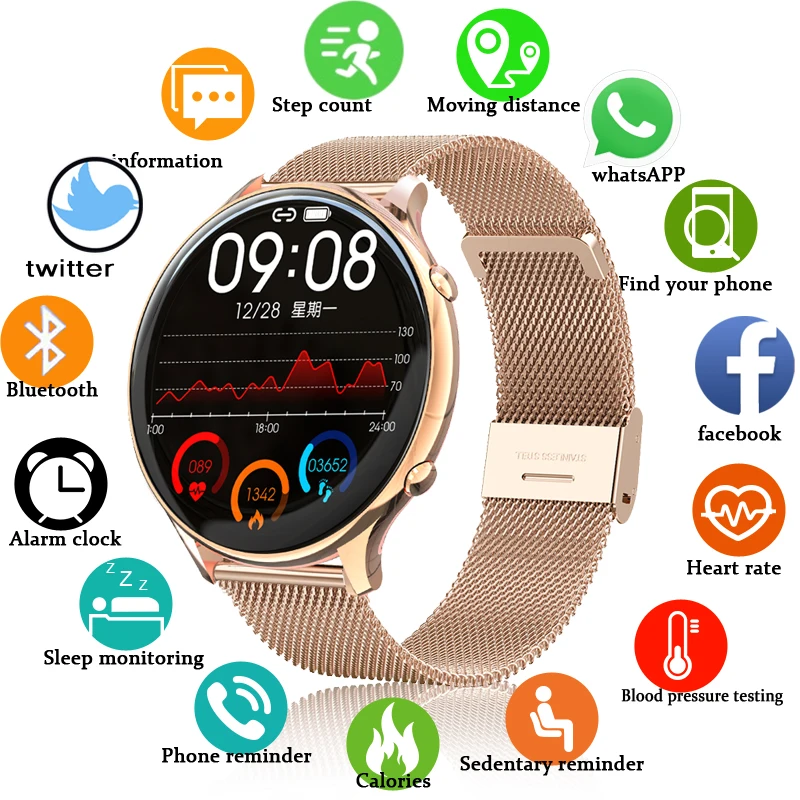 Купить 2022 Women Smart Watch Real-time Weather Forecast Activity Tracker Heart Rate Monitor Sports Ladies Smart Watch Men For Xiaomi за 1650рублей