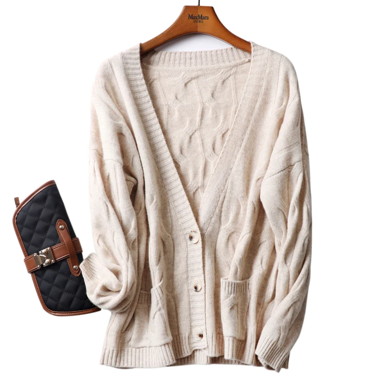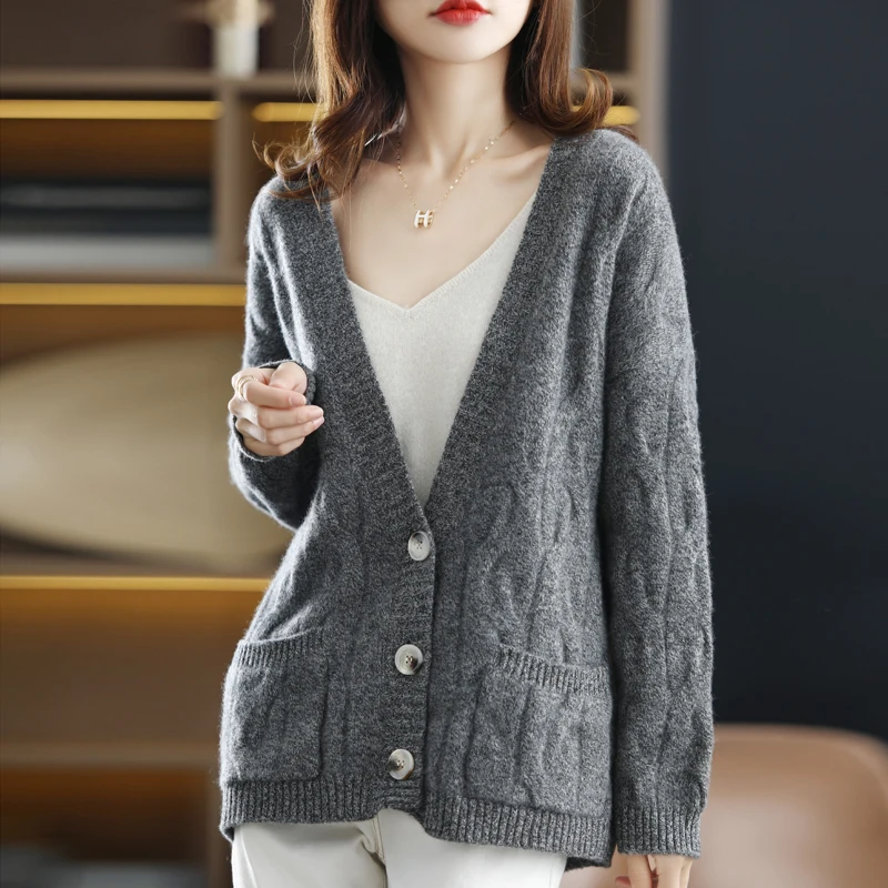 Купить 2023 Autumn And Winter New Wool Cardigan Female Korean Version Of The V-neck Buttoned Sweater Coat Wild Wool Knit Sweater y2a за 2050рублей