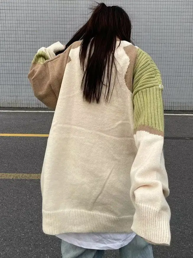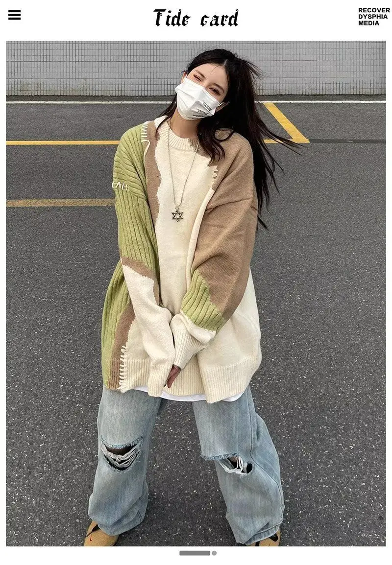 Купить 2023 Autumn and Winter Trendy Brand Design Sense Niche Color Contrast Stitching Sweater Men American Retro Trend Knitwear Trend за 1100рублей