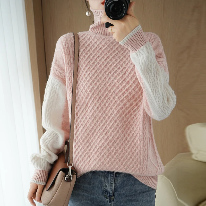 Купить 2023 New High-Neck Cashmere Sweater Women's Pullover Sweater Color Matching Long-Sleeved Short Inner knit Warm Bottoming Shirt за 2400рублей
