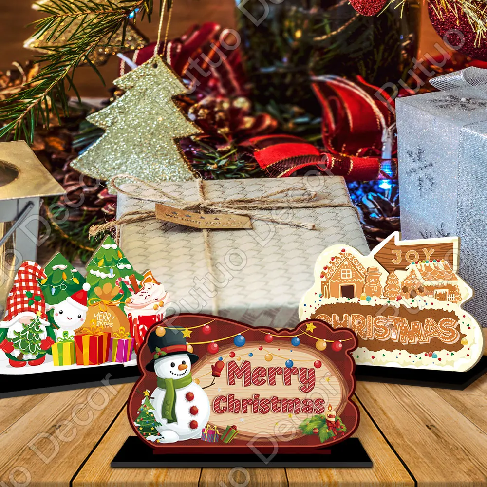 Купить 2023 Tree Navidad Gift Merry Christmas Table Sign Decorations Centerpieces Xmas Tree Wood for Navidad Gnome Ornament Putuo Decor за 300рублей