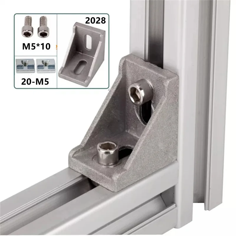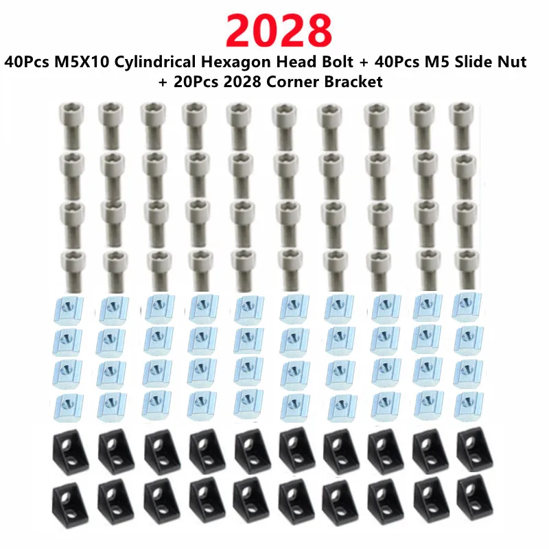 Купить 2028 Aluminum Profile Connector Set: 40Pcs M5X10 Cylindrical Hexagon Head Bolt + 20Pcs 2028 Corner Bracket + 40Pcs M5 Slide Nut за 700рублей
