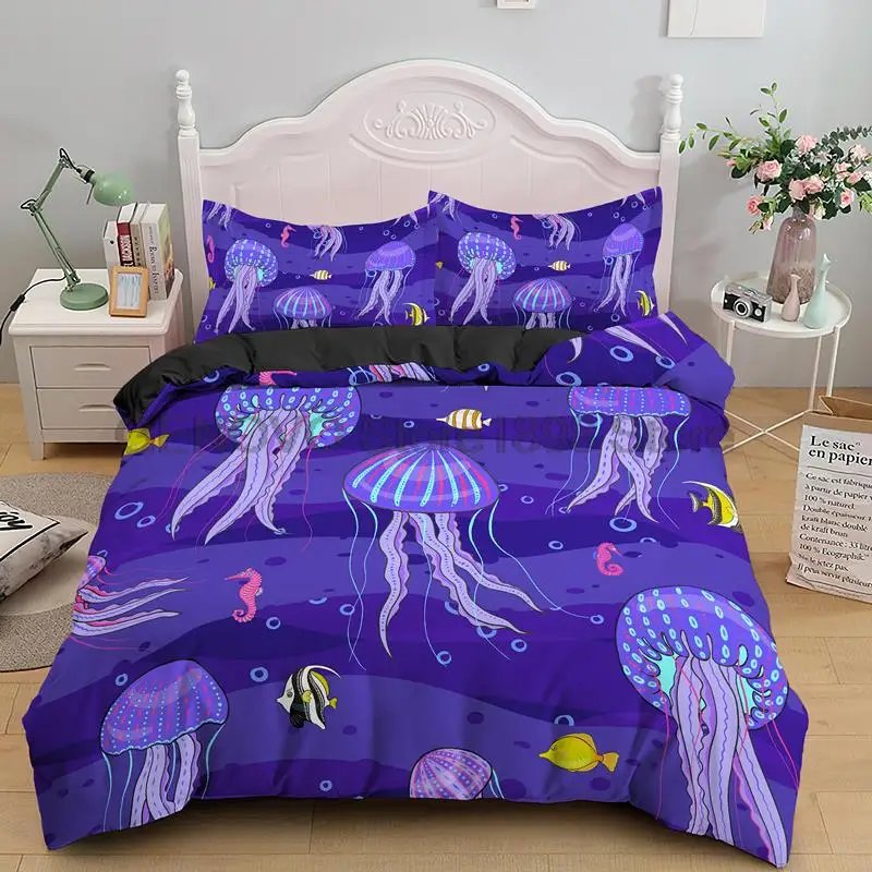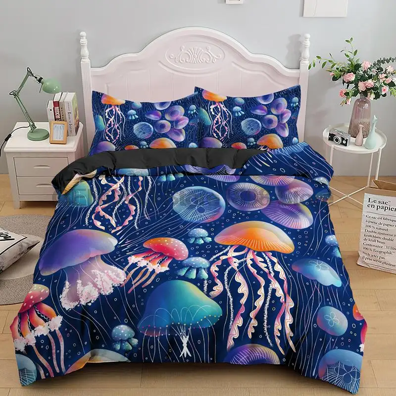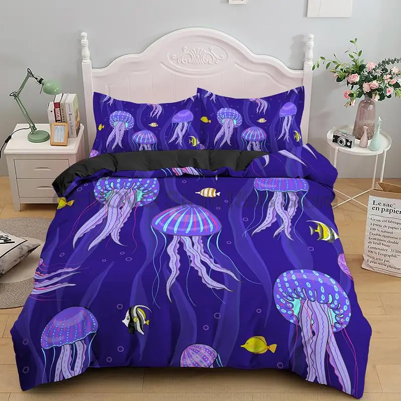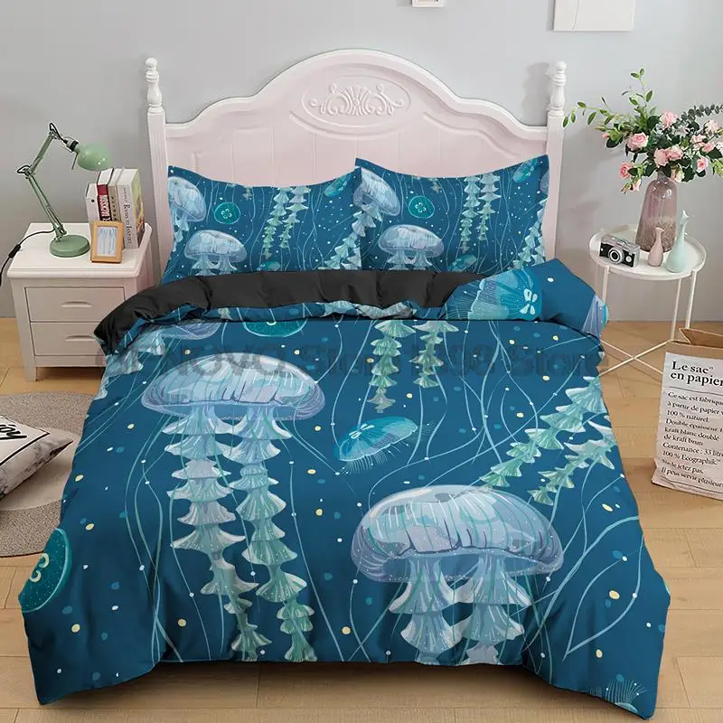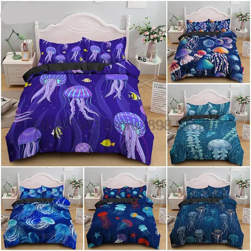 Купить 2/3 PCS Jellyfish Bedding Set Sea Animals Duvet Cover Single Double Bed Quilt Cover Home Textile Bed Cover Set Pillowcase за 1650рублей