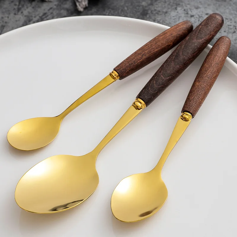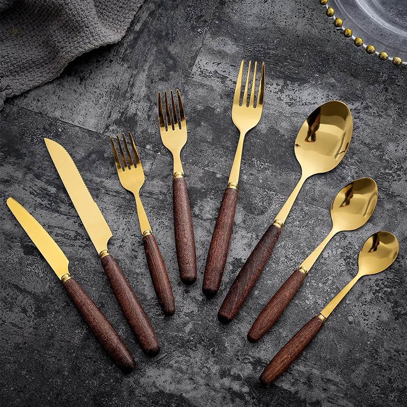 Купить 24 Pcs Beech Handle Dinnerware Cutlery Set Stainless Steel Sharp Steak Dinner Knives Forks Scoops Tableware goldenware Set за 1250рублей