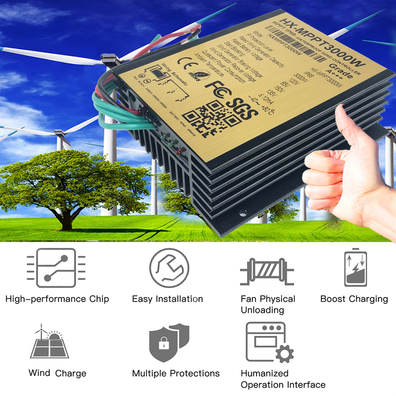 Купить 2500W 3000W MPPT Wind Charge Discharge Booster Controller 48V 96V 120V Regulator IP68 For AC Wind Turbine Generator за 10050рублей