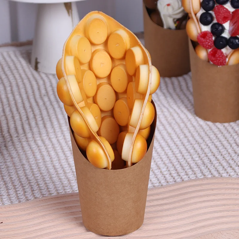 Купить 2PCS Hong Kong-style Bubble Egg Waffle Model Fake Ice Cream Egg Ggettes Puff Waffle Cake Food Model Display Dessert Fruit Sample за 1650рублей
