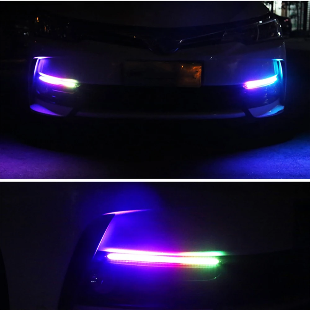 Купить 2Pcs Led Car DRL Daytime Running Lights Waterproof Universal DC 12V Auto Headlight Sequential Turn Signal Yellow Flow Day Light за 850рублей