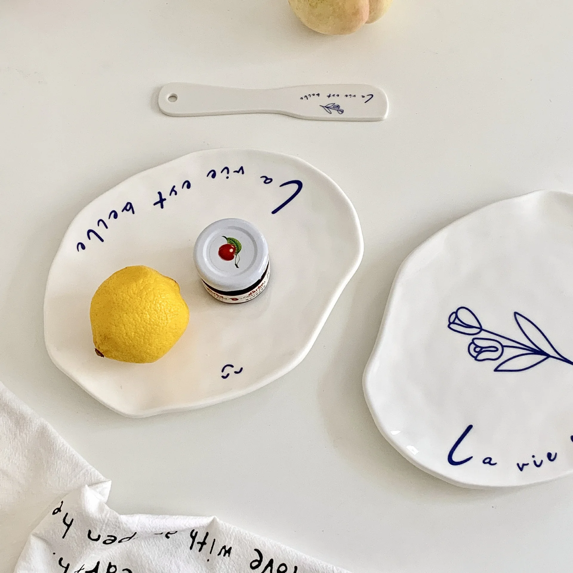 Купить 2pcs Irregular Ceramic Dessert Plate Cake Plate Butter Spatula for Decoration Plate Home Tableware Tulip Dishes Plates Set за 350рублей