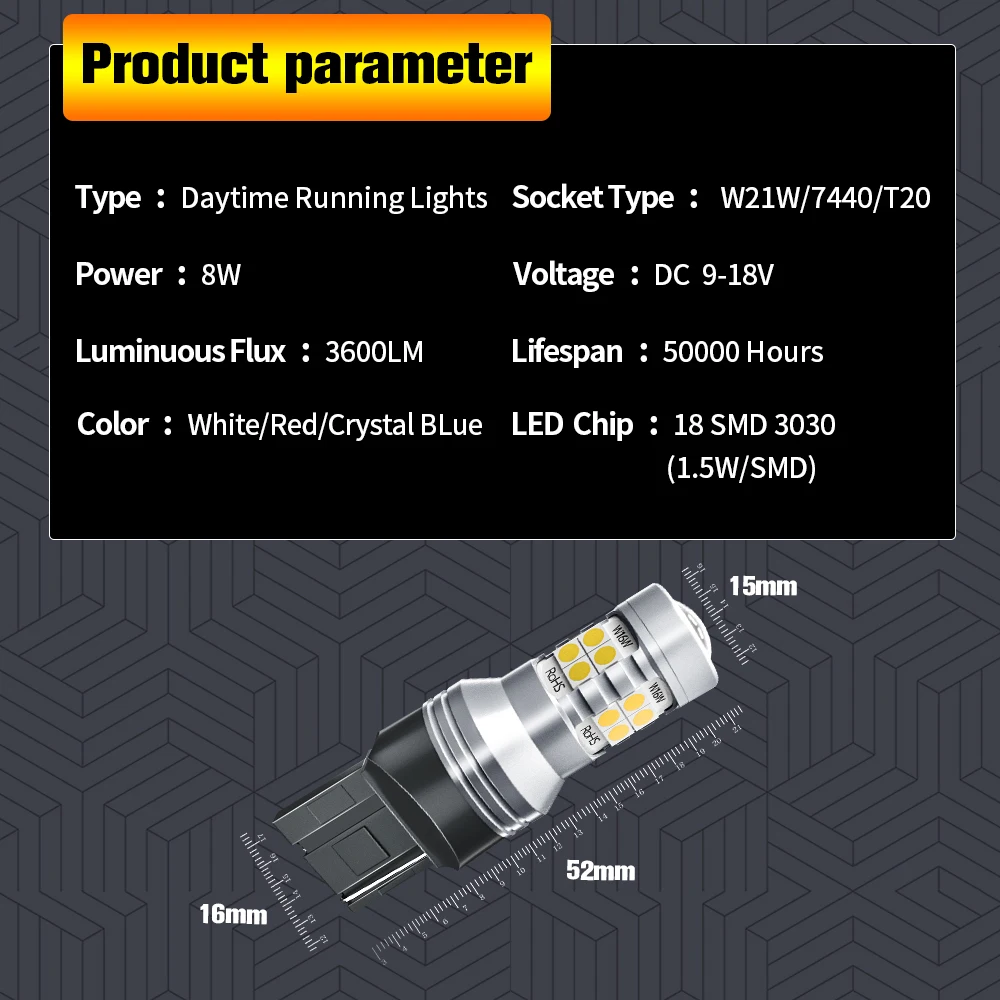 Купить 2pcs LED Daytime Running Light DRL Bulb Lamp Canbus No Error W21W 7440 T20 For VW Passat B8 2015 2016 2017 2018 2019 2020 за 700рублей