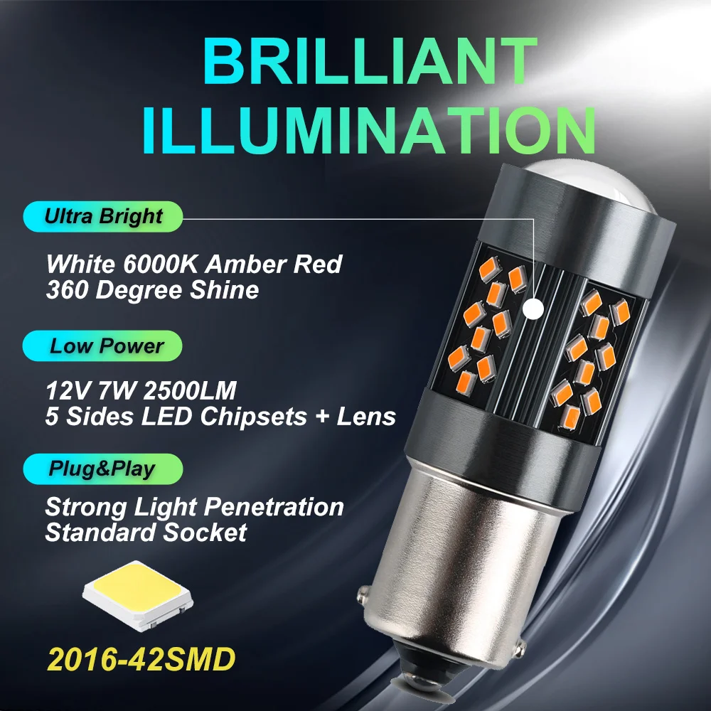 Купить 2x 2100LM 1157 BAY15D P21/5W 1156 BA15S P21W LED Bulbs Light 2016 42SMD Turn signal Parking Brake Backup Reverse Tail Light 12V за 450рублей