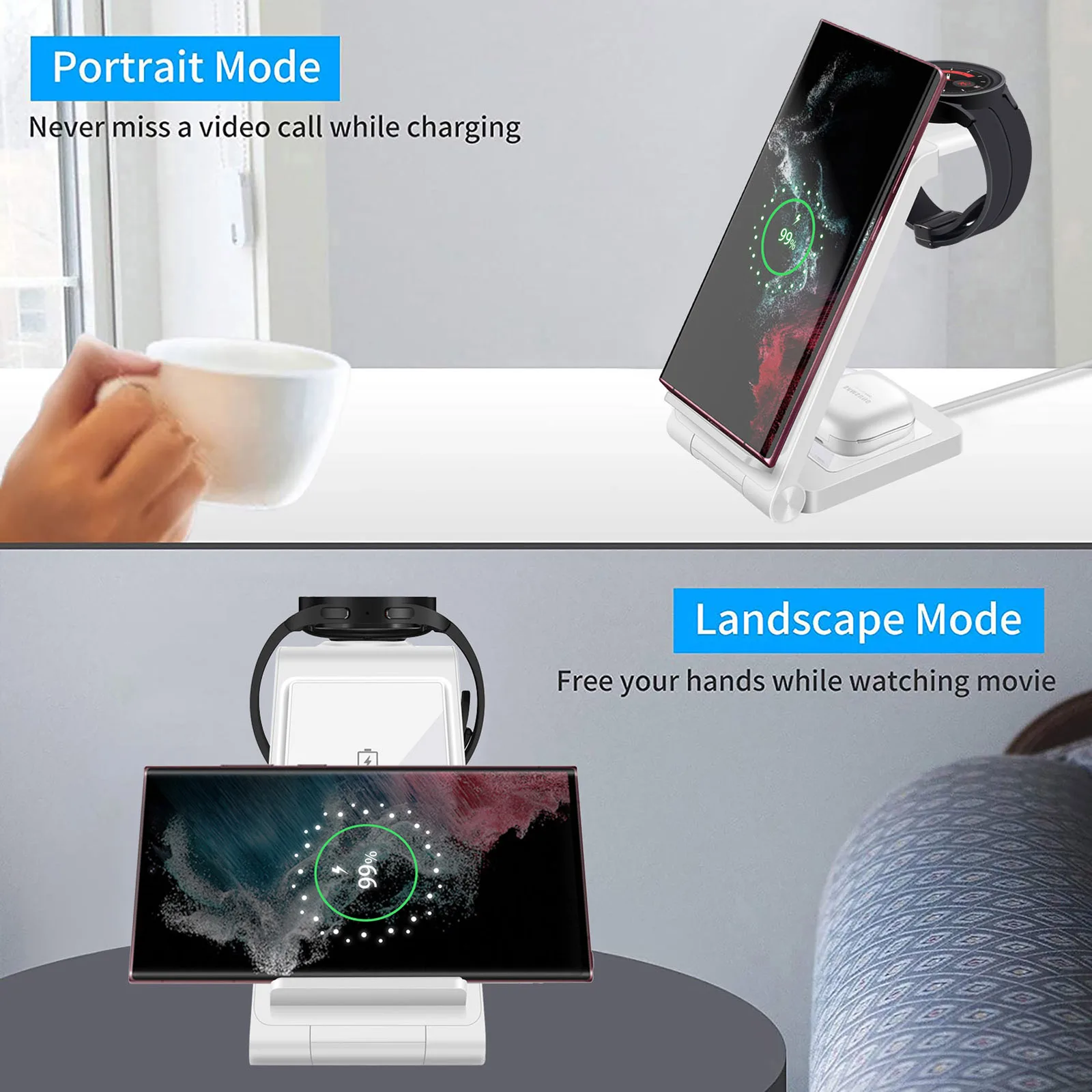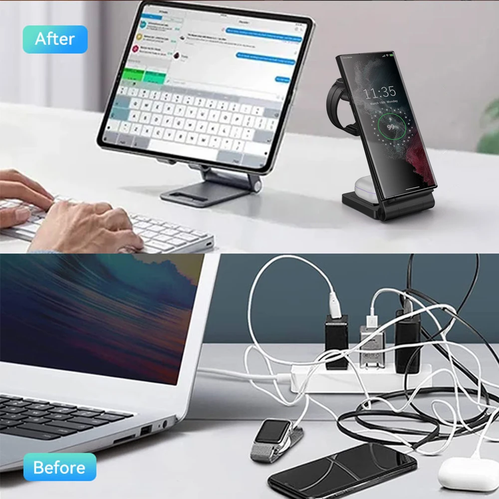Купить 3 In 1 Wireless Charging Stand for Samsung Watch 5 4 Active 2 Charger Station for Galaxy S23 Ultra S22 S21 Z Flip Fold4 Buds Pro за 800рублей