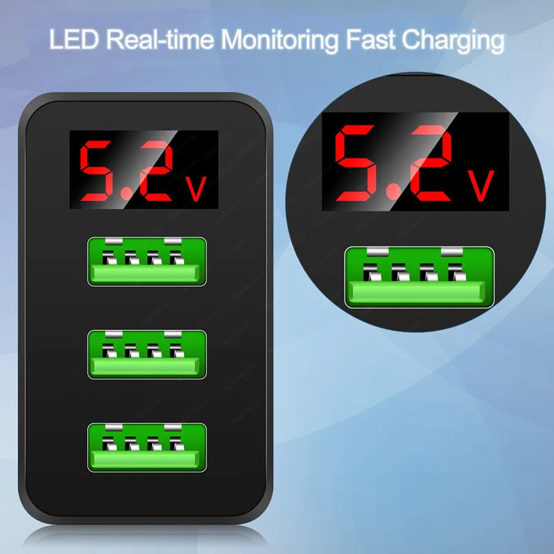Купить 3 Port USB Charger Quick Charge 3.0 Wall Charger Phone Adapter With LED Display For Samsung Xiaomi Huawei EU/US Plug Fast Charge за 200рублей