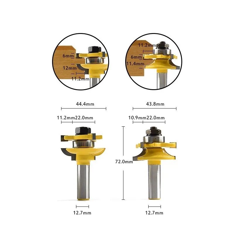 Купить 3 Teeth Round Cornor Router Bit 2pc 1/2" Shank Tenon Cutter Woodworking Tools For Template Trim Router Bit за 1000рублей