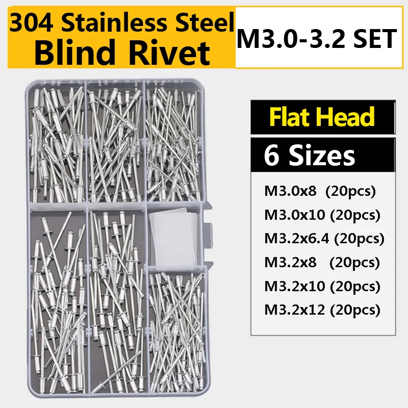 Купить 304 Stainless Steel Self Plugging Open End Dome Head Pop Blind Rivets Assortment Kit Set Sheet Metal, Automotive Duct Work за 500рублей
