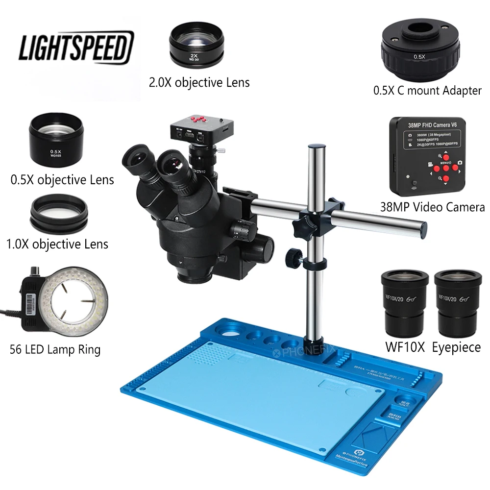 Купить 3.5-90X Continuous Zoom Simul Focal Trinocular Stereo Microscope 38MP Camera for Lab Maintenance Phone CPU Soldering Repair Tool за 10100рублей