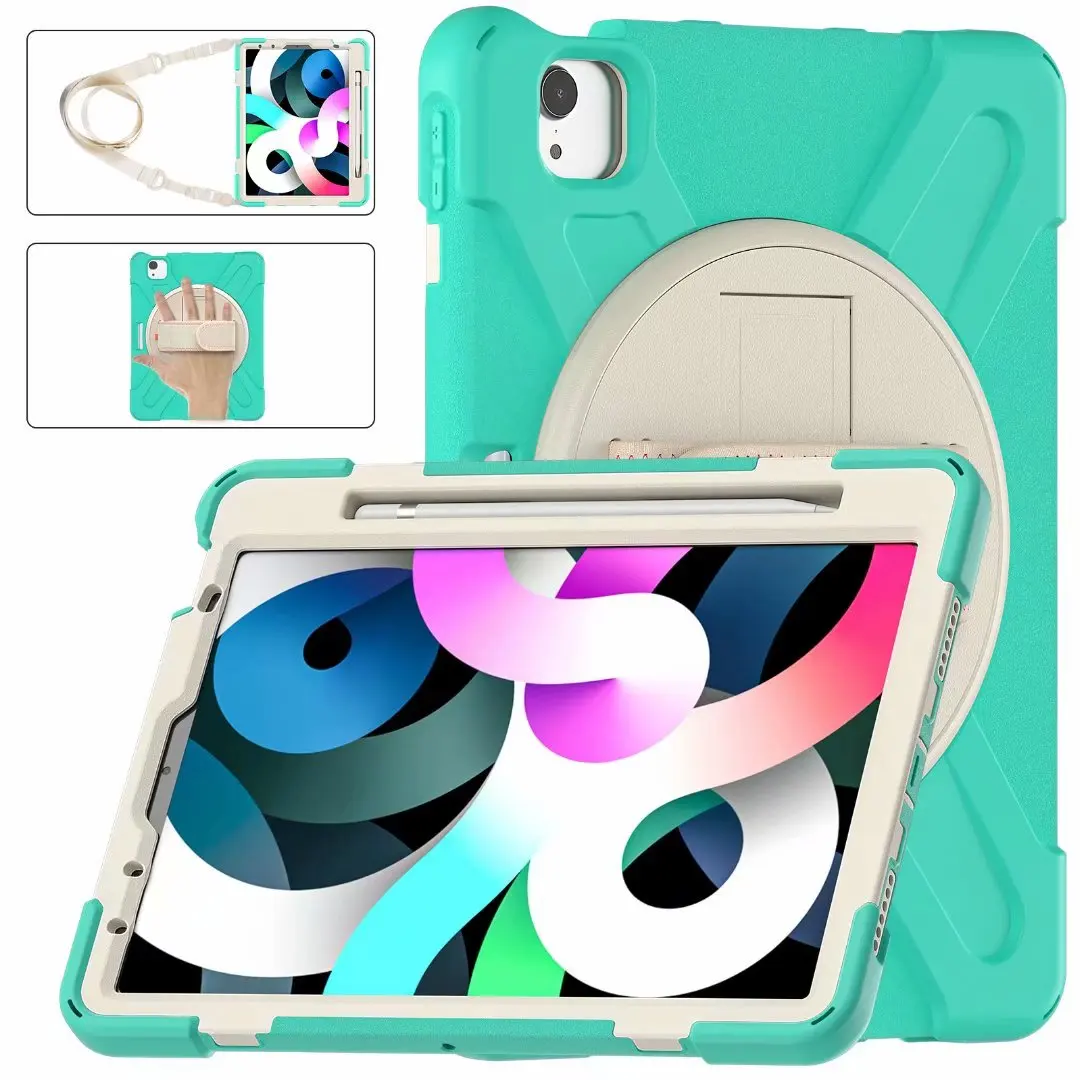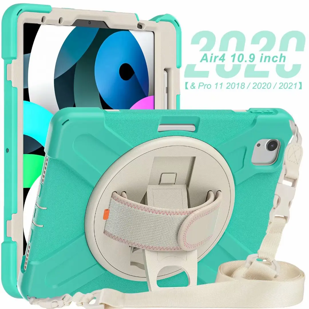 Купить 360 Rotation Case for ipad air 4 10.9 inch 2020 Hand Strap&Kickstand Silicone Shockproof Tablet Cover for ipad air 4 за 3300рублей