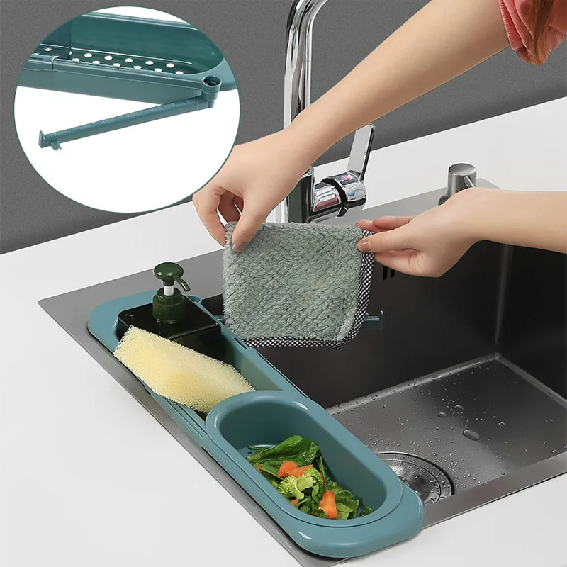 Купить 36.5-50cm Retractable Sink Shelf Drain Rack Filter Leftovers Drain Basket Dishwashing Rag Storage Rack Kitchen Cloth Rack за 450рублей