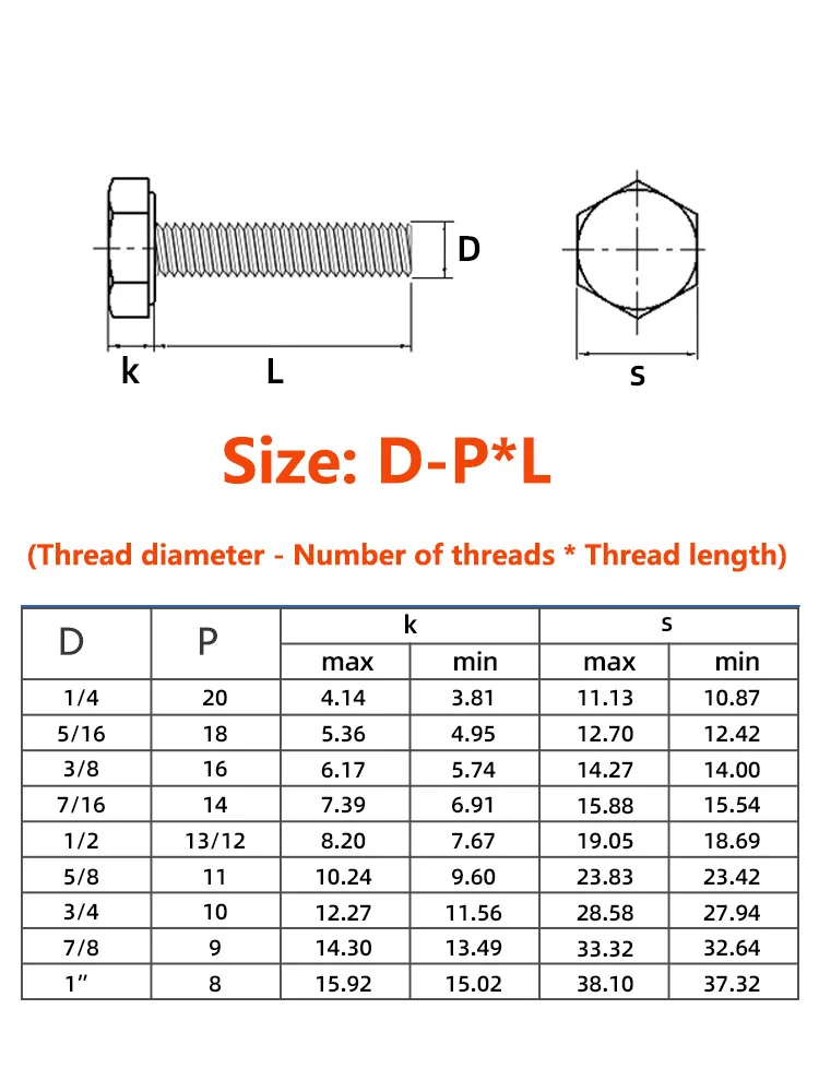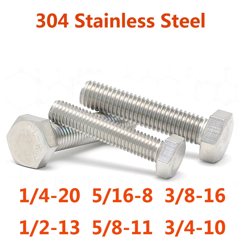 Купить 3/8 1/2 5/16 3/4 1/4 7/16 UNC 304 Stainless Steel American British External Hexagonal Screw External Hex Hexagon Head Screw за 300рублей