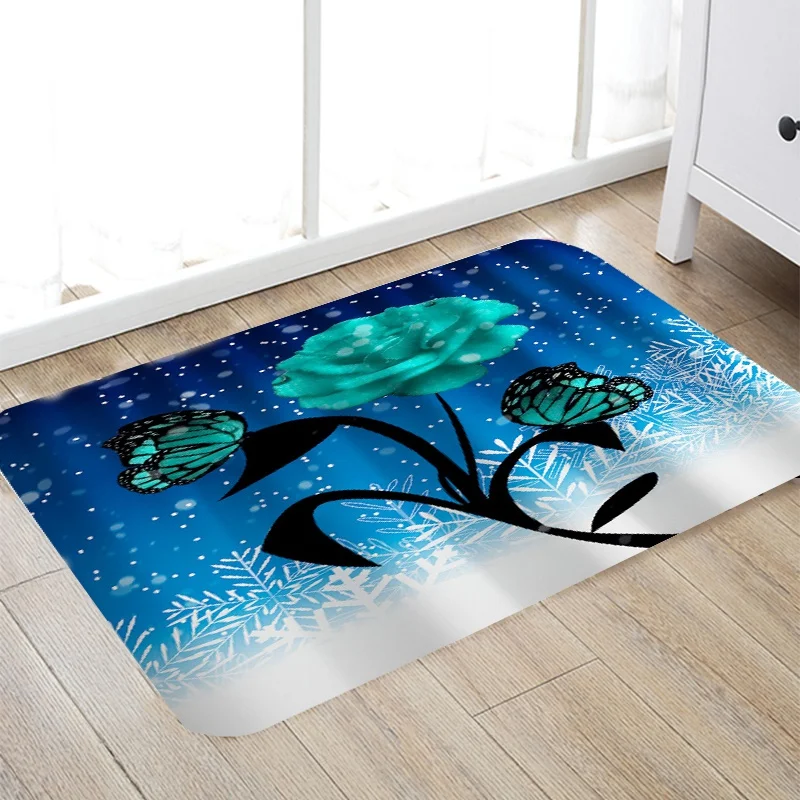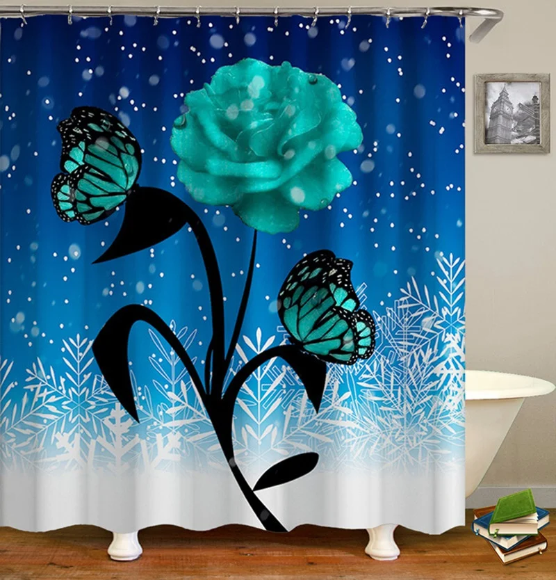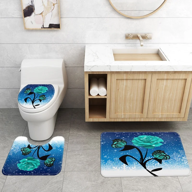 Купить 3D Bright Rose Butterfly Snowflake Pattern Bathroom Set Shower Curtain Non-slip Cushion Toilet Cushion U-shaped Cushion за 450рублей